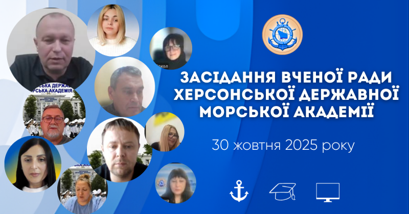 30 жовтня 2025 року під головуванням ректора Херсонської державної морської академії Гусєва Віктора Миколайовича відбулося планове засідання вченої ради. Захід було проведено в онлайн-форматі на платформі ZOOM.