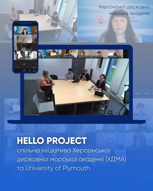 - 13 лютого 2024 року Херсонська державна морська академія та Плімут розпочали роботу в Hello Project (керівниця проекту Ірина ШВЕЦОВА). Курсанти ХДМА з різних курсів факультету судноводіння познайомилися із студентами Плімуту.
