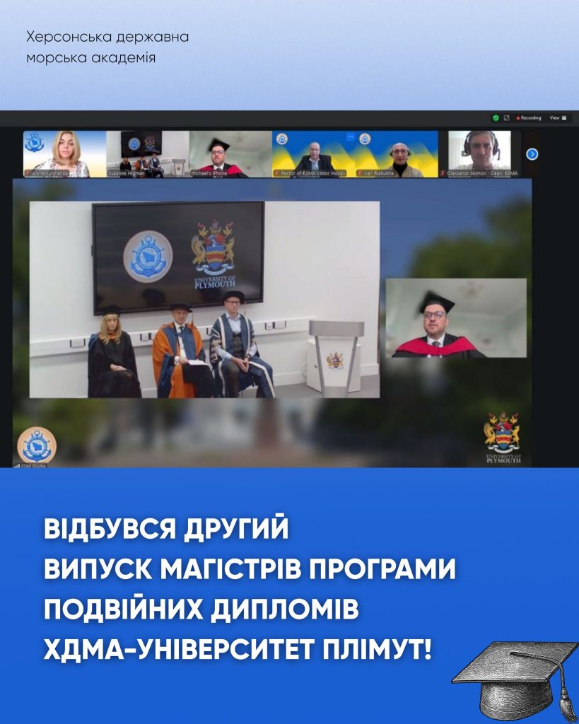 - 02 березня 2026 року відбувся другий випуск магістрів програми подвійних дипломів ХДМА-Університет Плімут! Здобувачі вищої освіти, які навчалися за програмою, отримали два дипломи та нові перспективи для побудови майбутнього. Колектив ХДМА щиро вітає наших магістрантів, а тепер уже високваліфікованих спеціалістів у галузі морської інженерії і бажає нових звершень та досягнень. Висловлюємо щиру вдячність нашим партнерам – Університету Плімуту за спільну роботу та вдячність за такі можливості і підтримку – Cormack Consultancy Group , Офіс Президента України , Міністерство освіти і науки України.