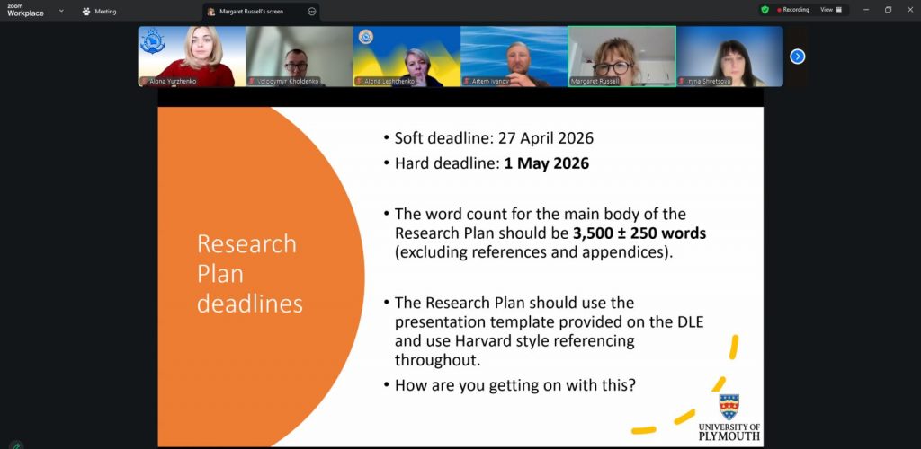 - 24го березня 2025 року – заняття із Dr. Helen Bowstead (English Language Centre Manager, University of Plymouth), ELS session 6 “Research Plan 3: KSMA 7000”