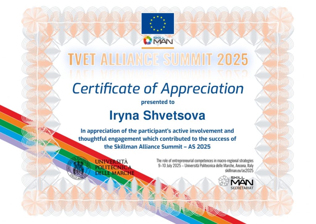 9–10 липня 2025 року доктор педагогічних наук, професор кафедри англійської мови в судноводінні Ірина ШВЕЦОВА, офіційний член Skillman Network (Official Member), представила Херсонську державну академію на щорічному саміті альянсу Skillman (AS25).
