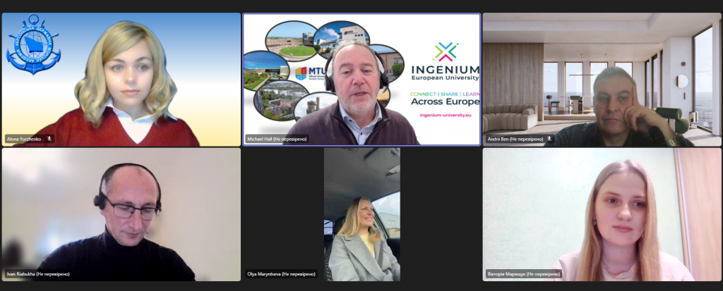 21 листопада 2025 року, відбулася третя робоча зустріч ХДМА з представниками Національного морського коледжу Ірландії (м. Ringaskiddy, Республіка Ірландія). Зустріч модерував Michael Hall, старший викладач та координатор з питань партнерства INGENIUM технологічного університету Мюнстер. Сторони окреслили ключові напрямки майбутньої співпраці: спільні наукові дослідження; освітні проєкти; викладацька та студентська мобільність. Обговорили конкретні кроки та ініціативи, які партнери планують реалізувати найближчим часом.