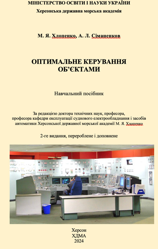 М. Я. Хлопенко, А. Л. Сіманенков. Оптимальне керування об’єктами : навч. посіб. Херсон : ХДМА, 2024. 166 с. ISBN 978-966-2245-76-9