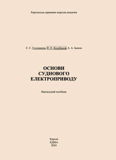Основи суднового електроприводу : навч. посібник / С. С. Голощапов, О. К. Колебанов, А. А. Іванов. – Херсон : ХДМА, 2024. – 162 с. ISBN 978-966-2245-75-2