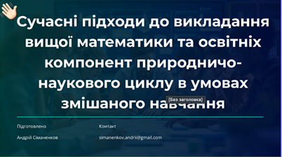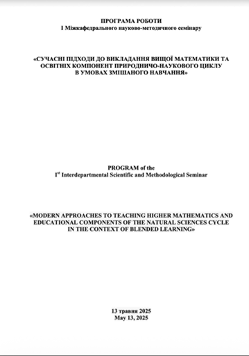 - Ist Interdepartmental Scientific and Methodological Seminar «MODERN APPROACHES TO TEACHING HIGHER MATHEMATICS AND EDUCATIONAL COMPONENTS OF THE NATURAL SCIENCES CYCLE IN THE CONTEXT OF BLENDED LEARNING», 13 травня 2025